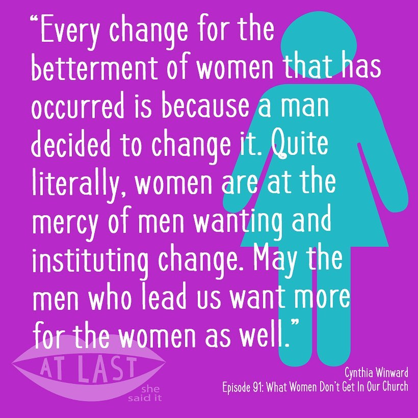 Cynthia shared an essay titled What Women Don’t Get in Our Church in Episode 91 that resonated deeply with a lot of our listeners. You can read that essay on our website by clicking here.