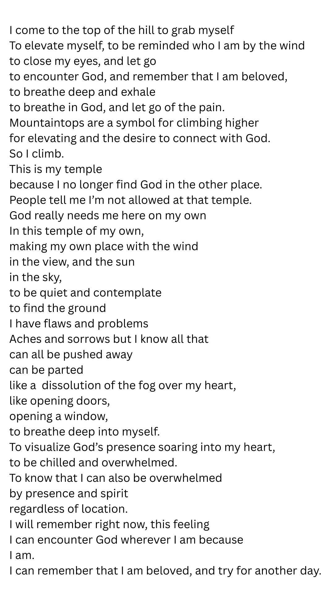 I have always connected with God through nature and leaving my everyday life behind, but it took on a new meaning and a new reverence in the past few years. When I suddenly couldn’t find God at church, at the temple, or even my own home, I felt completely lost. I didn’t know where I could connect with the spirit at all anymore. I felt totally alone.