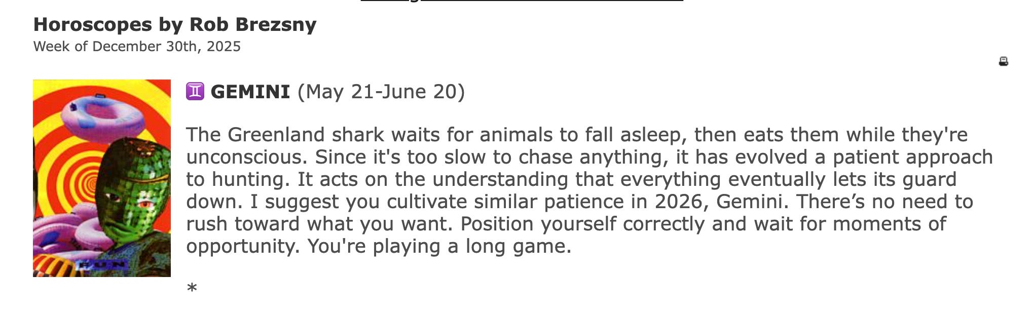 The point the book makes is, you’re not supposed to choose your own word—the word is supposed to choose you. I’m not the kind of person who picks a word every year, but sometimes ideas have presented themselves to me that have felt important. And this kind of thing—right up at the edge of woo-woo—has kinda been my schtick for a long time. One thing any kid growing up in my house could count on is that at some point during the day, I was going to read her horoscope from the newspaper on the kitchen counter. If her friends came over, they were going to have to endure hearing theirs, too.